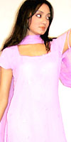 Fashion of India (Item Code: FG7042) Blue Georgette (lined) Kameez with Lace Bodice and Lace-Edged 3/4 Length Sleeves - Matching Churidar and Blue-Pink Shaded Chiffon Scarf As Seen On Kareina Kapoor US $ 109.00
