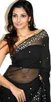 Back This Plus (Item Code: FG7407a) Intricate Silver Zardosi and Sequins Handworked onto Royal-Blue Pure Georgette Saree and Custom-Made Blouse (sleeveless lined) - Matching Petticoat see details As Seen On Sonali Bendre US $ 259.00